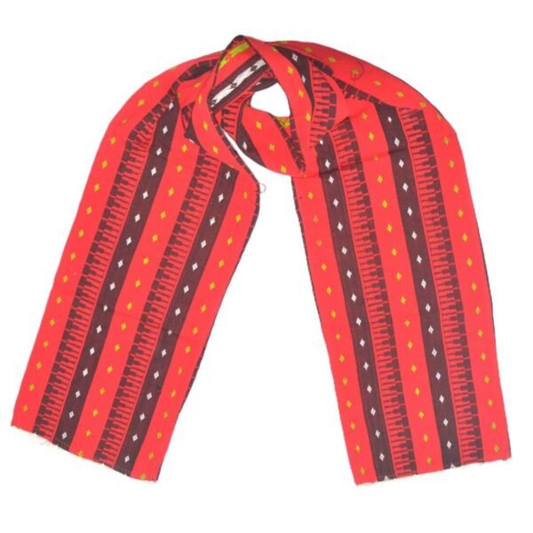 Dimasa(Risa ) Traditional Muffler/Scarf worn around the neck or head. Handwoven in RED with Black Mix colour with different design(Striped) in border. Multicoloured & Unisex. Size:LxB (140X20)cm