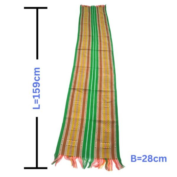 Be the first to review “Rabha Traditional Muffler/Scraf/Stole/Scarves. Handwoven in Green colour with stripes/border of different multicolor.”